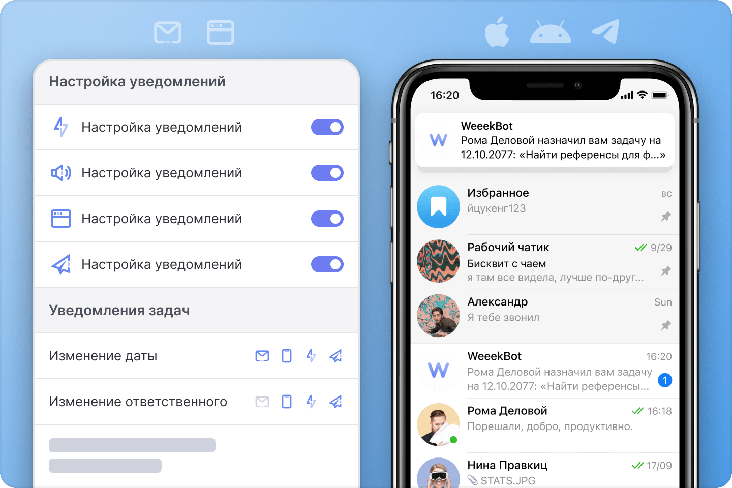 tasks, projects, Kanban boards, Gantt, calendars, reminders and notifications in Telega™ - all this is free in the team for you