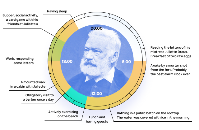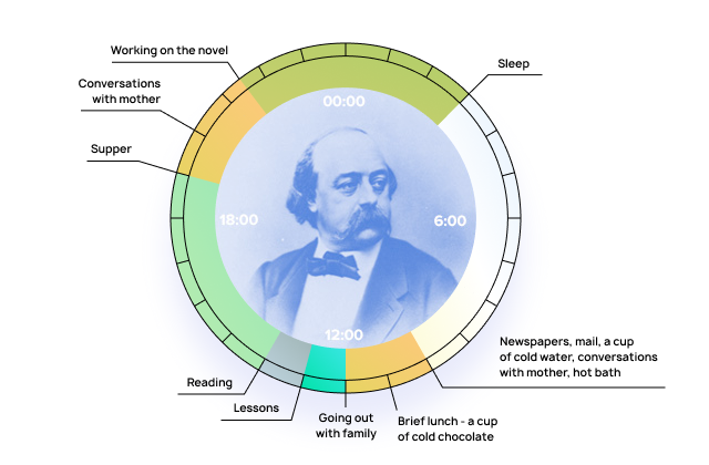 The daily schedule at the time of the writing of the Madame Bovary novel in 1851-1856.