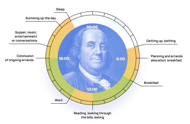 Every morning, Franklin asked himself,"What good shall I do this day?". At the end of the night, he asked himself, "What good have I done today?"