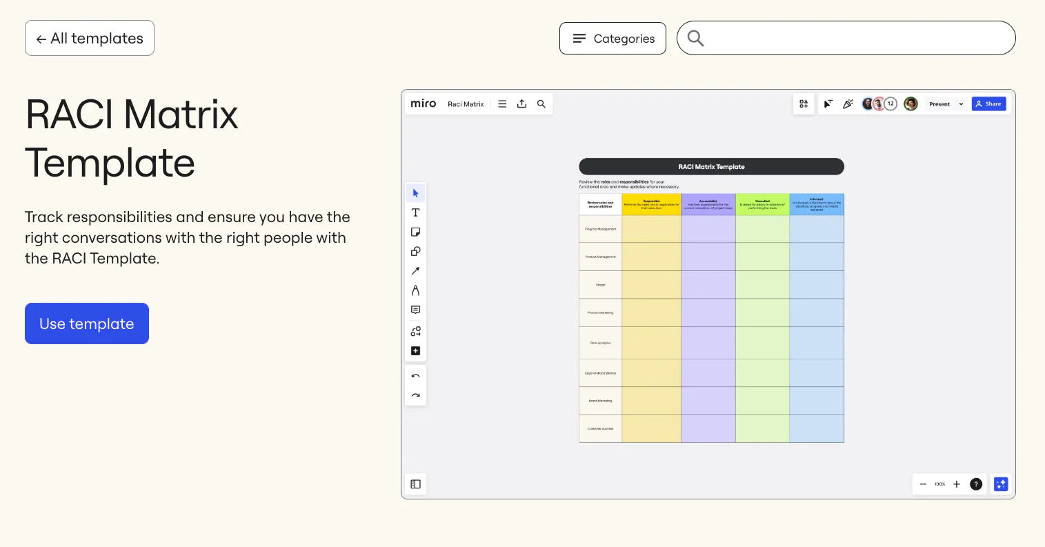 ❌ Challenging for large projects. In complex or long-term projects with many participants, the RACI matrix can become unwieldy. If team members leave or are replaced, updating the matrix can turn into a cumbersome task.