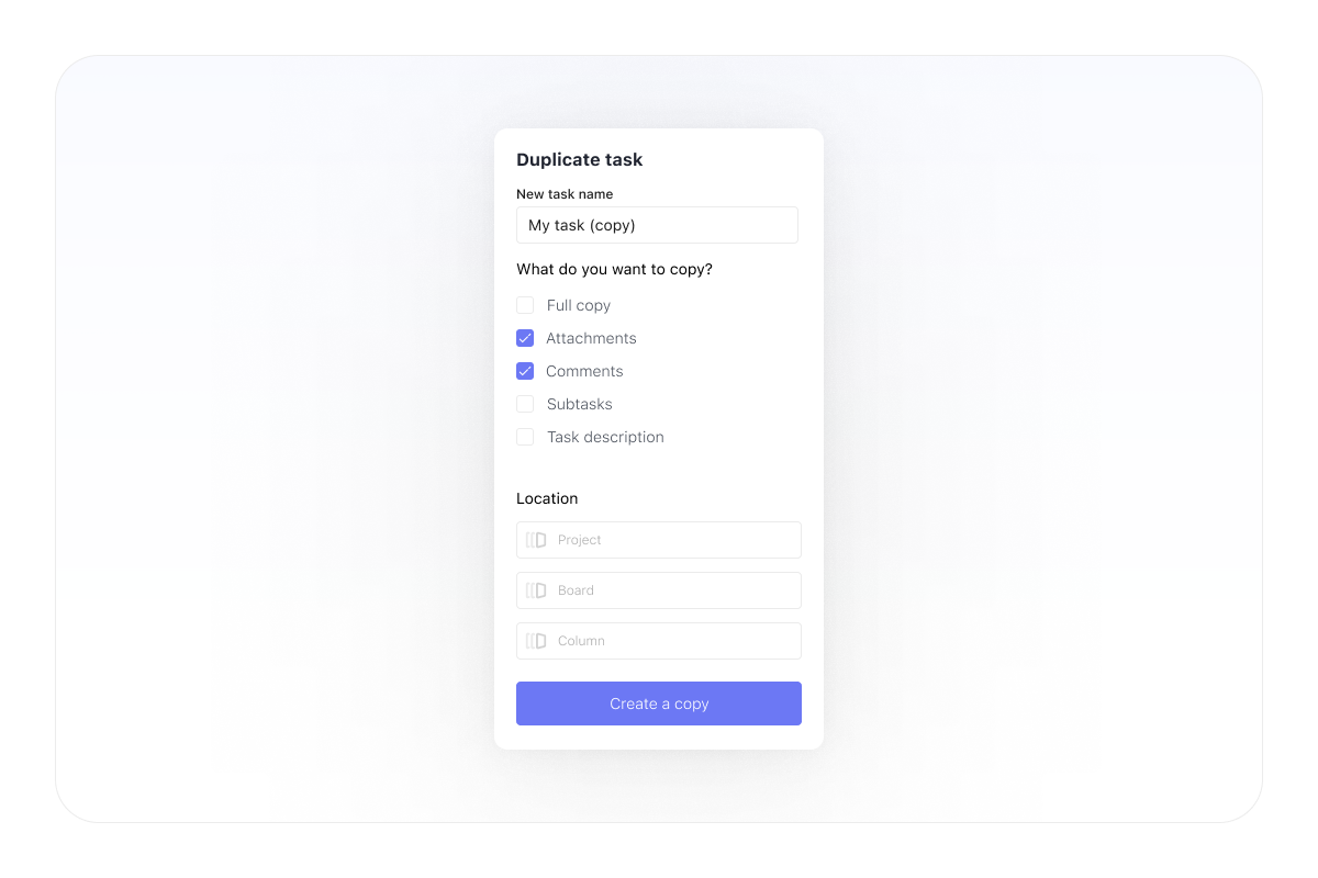 - what data should be copied (you can copy the description, attachments, subtasks, and even comments);