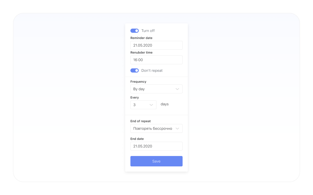 - enable recurring notifications, for example, if the task deadline is not soon and there is a high chance of forgetting about it.