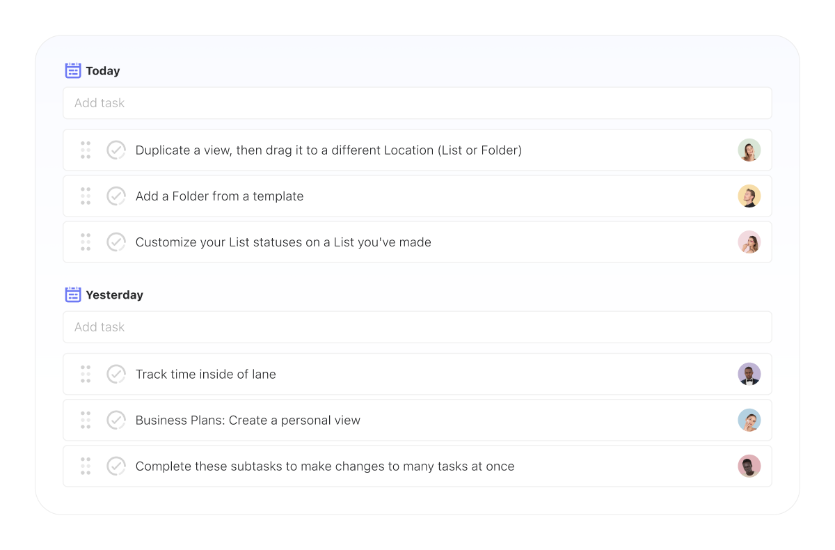 In each group, you can create a task in the same way as in calendar mode and whiteboard mode — just put the cursor in the “Add task” field, write the name and press Enter.