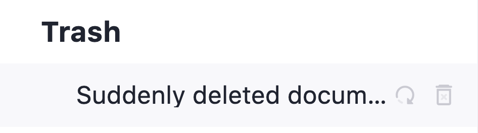 At the bottom, in the sidebar menu, there is a trash, where deleted documents are stored. Suddenly you delete something wrong - go to the trash and click on the icon to the right of the document.