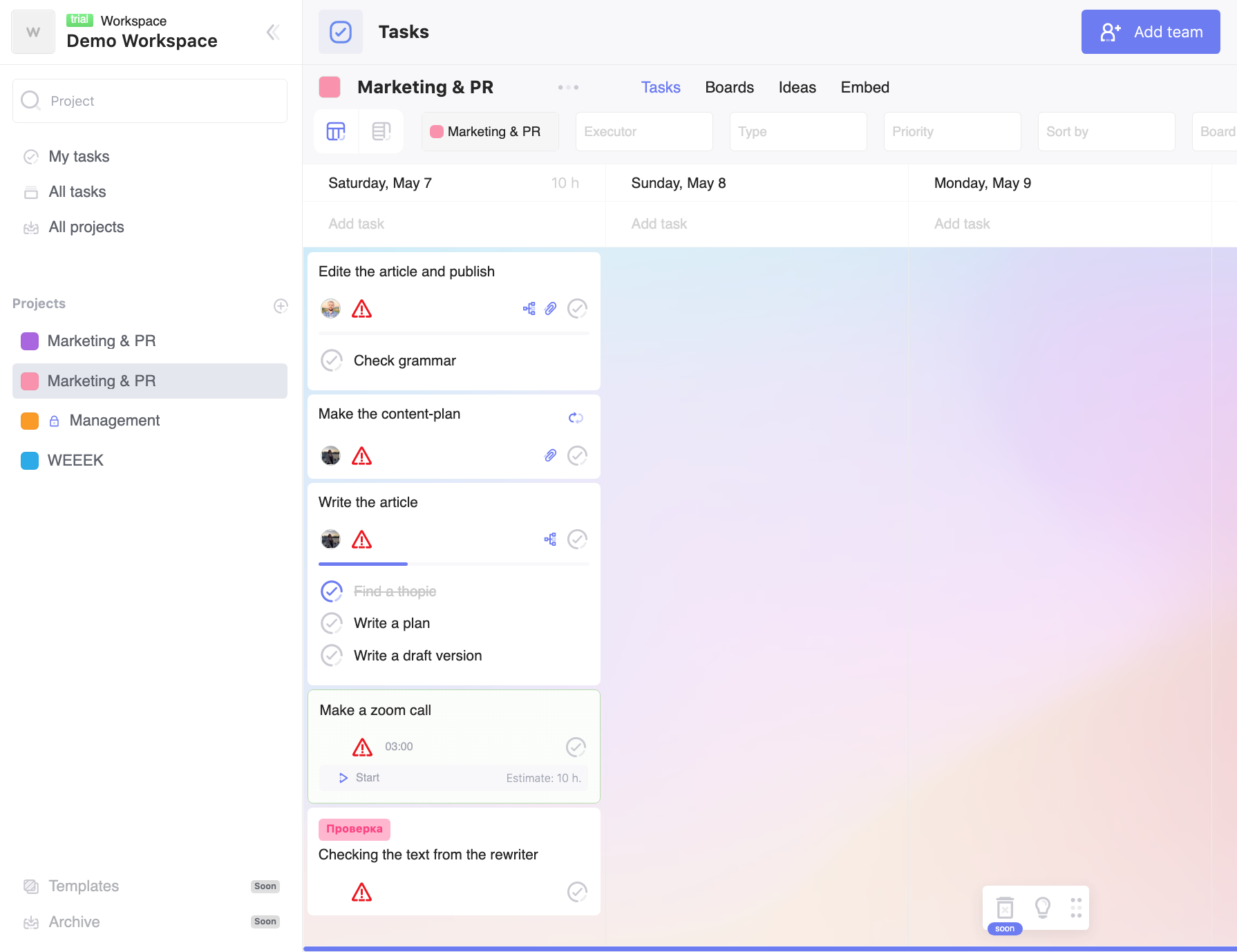 - Removed a bug with subtasks - they sometimes disappeared on the task page and when opening the task via a link.