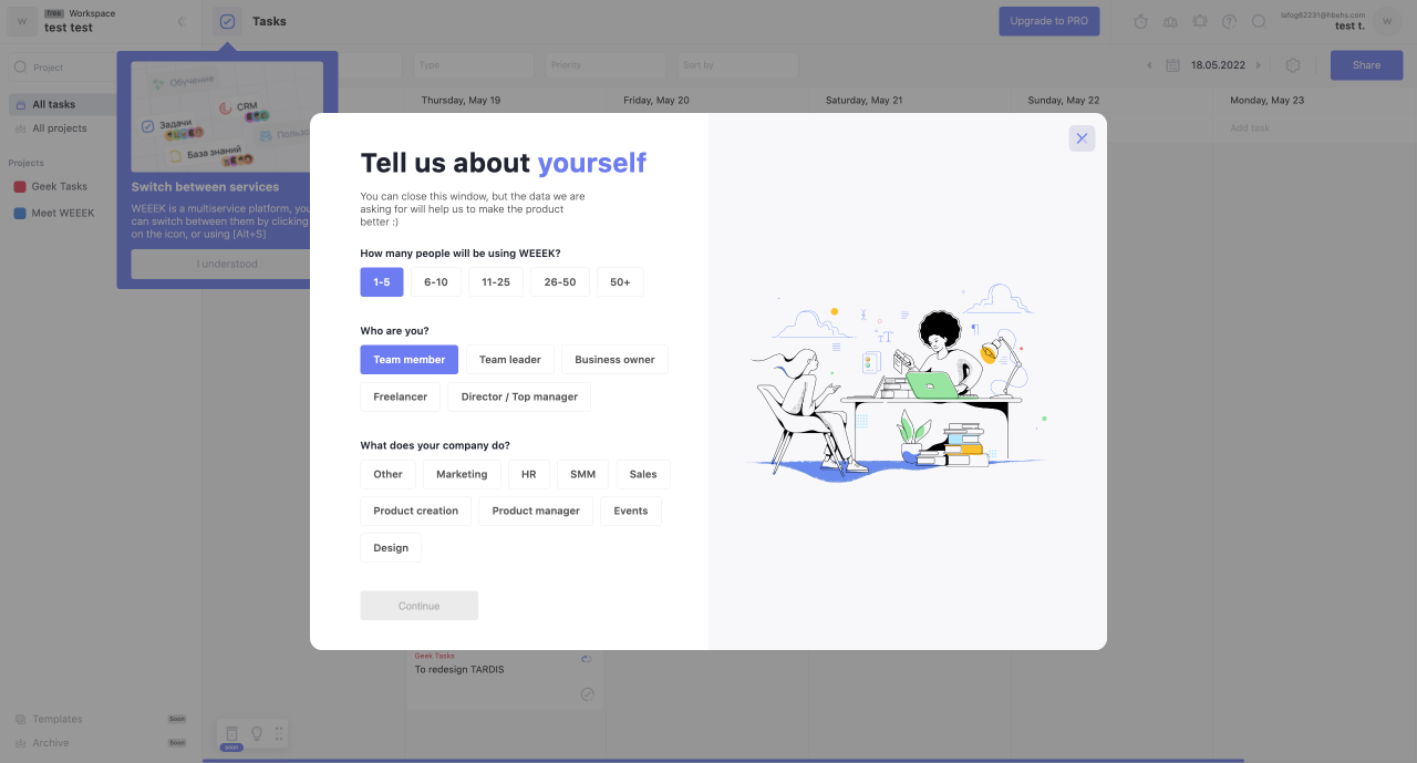 Another important advantage of onboarding is the ability to direct users’ attention in the right direction. This means that after registering on your site, they will not “float freely” through the interface, but will follow a specific path that includes the most significant features of the product. Such training can be easily made optional - if users do not refuse it, they are much more likely to get to the target action you need (purchases, subscribing to a PRO account, etc.).