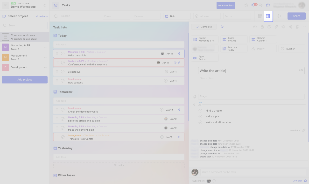 Lists mode is suitable if you are more used to working with to-do lists rather than boards or a calendar.