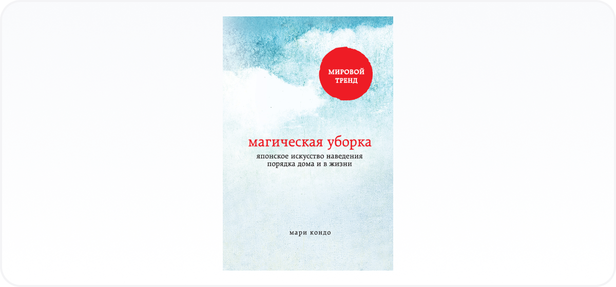 Книга о том, как убраться раз и навсегда, избавиться от лишних вещей, а нужные раскладывать так, чтобы они возвращались на место. Поговаривают, если начать применять семь правил магической уборки от КонМари, то в доме будет появляться меньше ненужных безделиц.