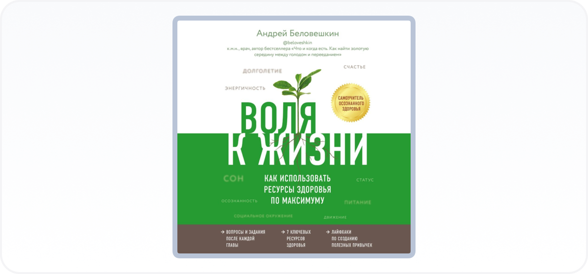 2. «Воля к жизни. Как использовать ресурсы здоровья по максимуму», Андрей Беловешкин