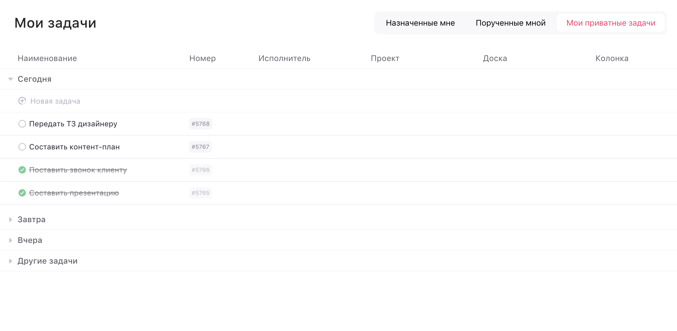 - Задачи в режиме списка — это сразу готовый список дел