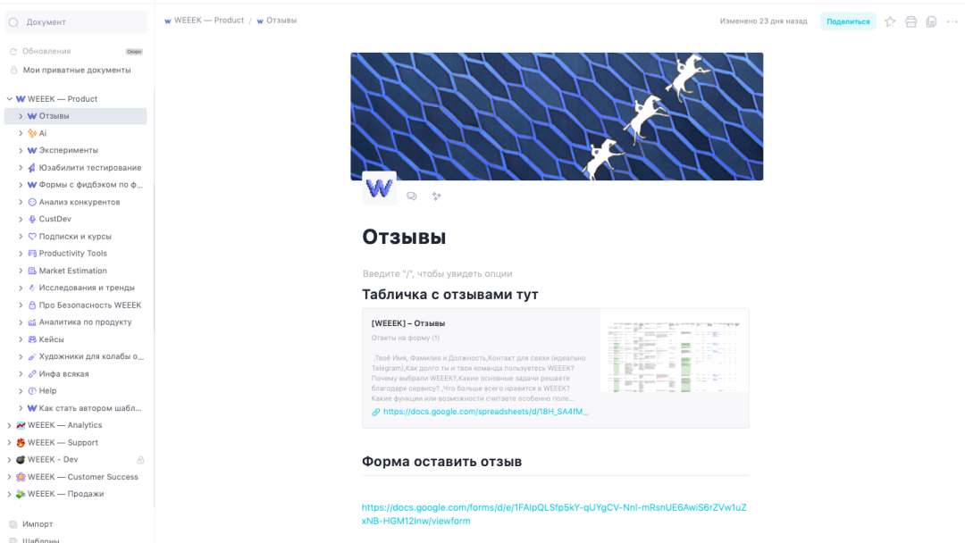 | WEEEK | Confluence | MediaWiki | Notion | Google Документы | |