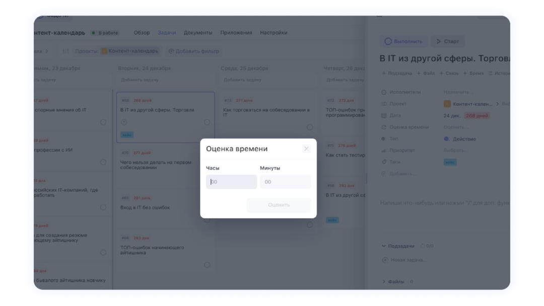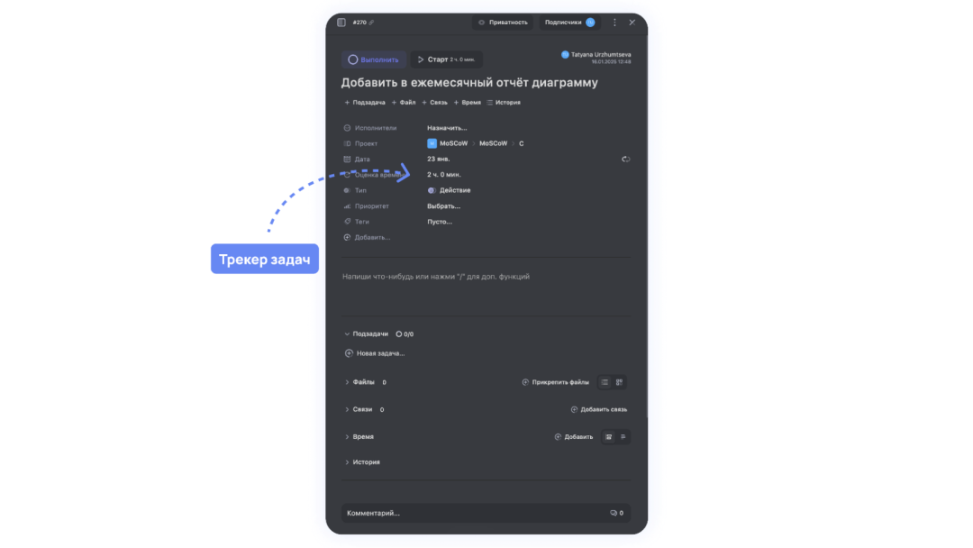 Трекинг задач фиксирует время на каждую задачу и формирует отчётность по расходам времени. Это помогает понять, на что в плане уходит больше времени, и учесть это в планировании следующих дней.