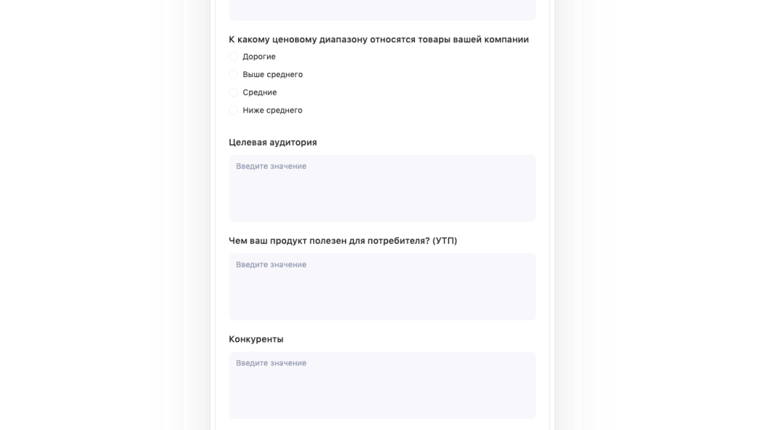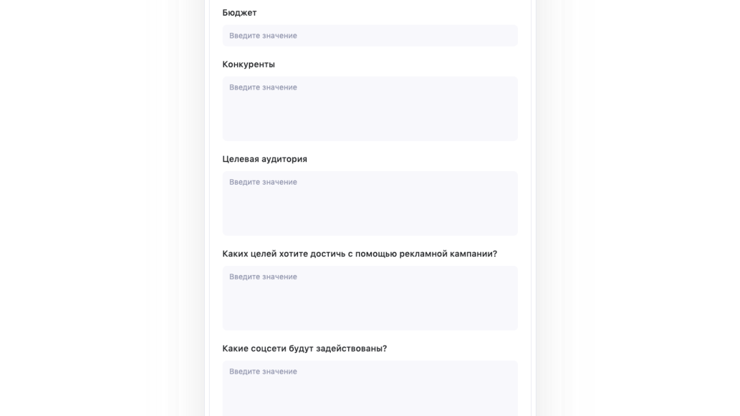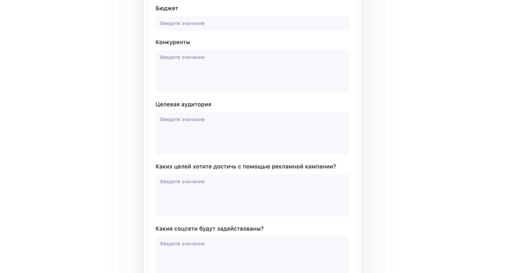 Поле для самых разных комментариев заказчика. Например, если проект связан с ведением соцсетей, то здесь может быть информация о видении tone of voice или креативов.