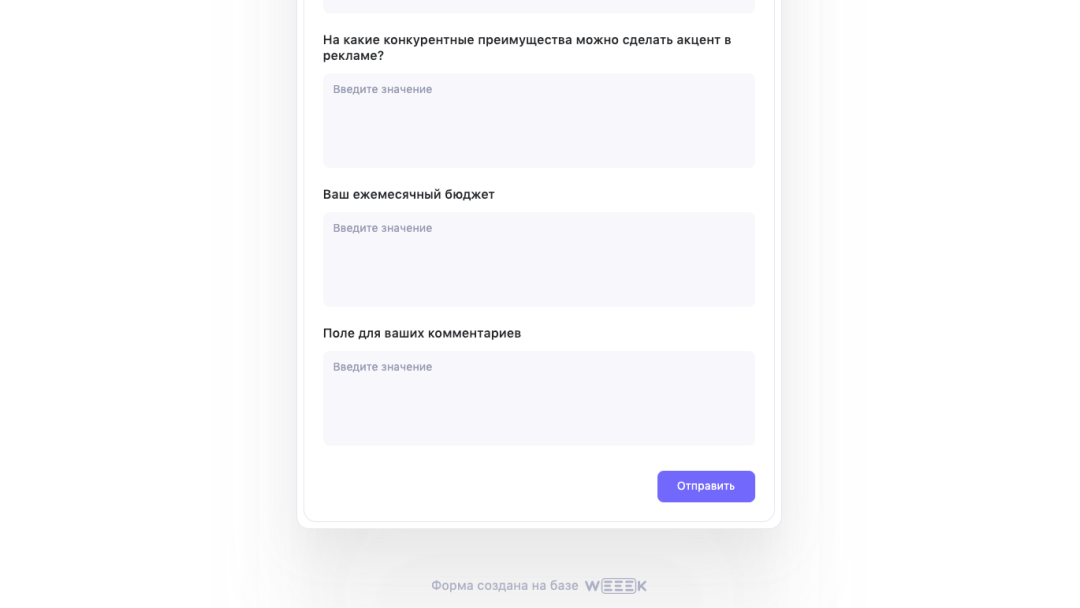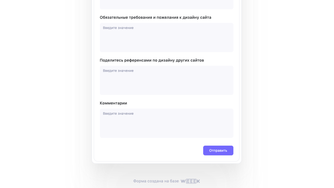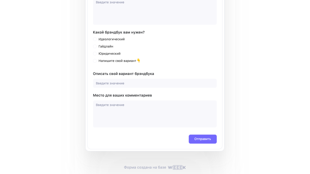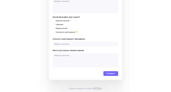 - Составить бриф на раз-два-три: подготовься к составлению брифа, изучи заказчика, сформулируй вопросы под конкретный проект и оформи бриф в удобном для тебя сервисе. Советуем делать это в Формах сервиса WEEEK💙