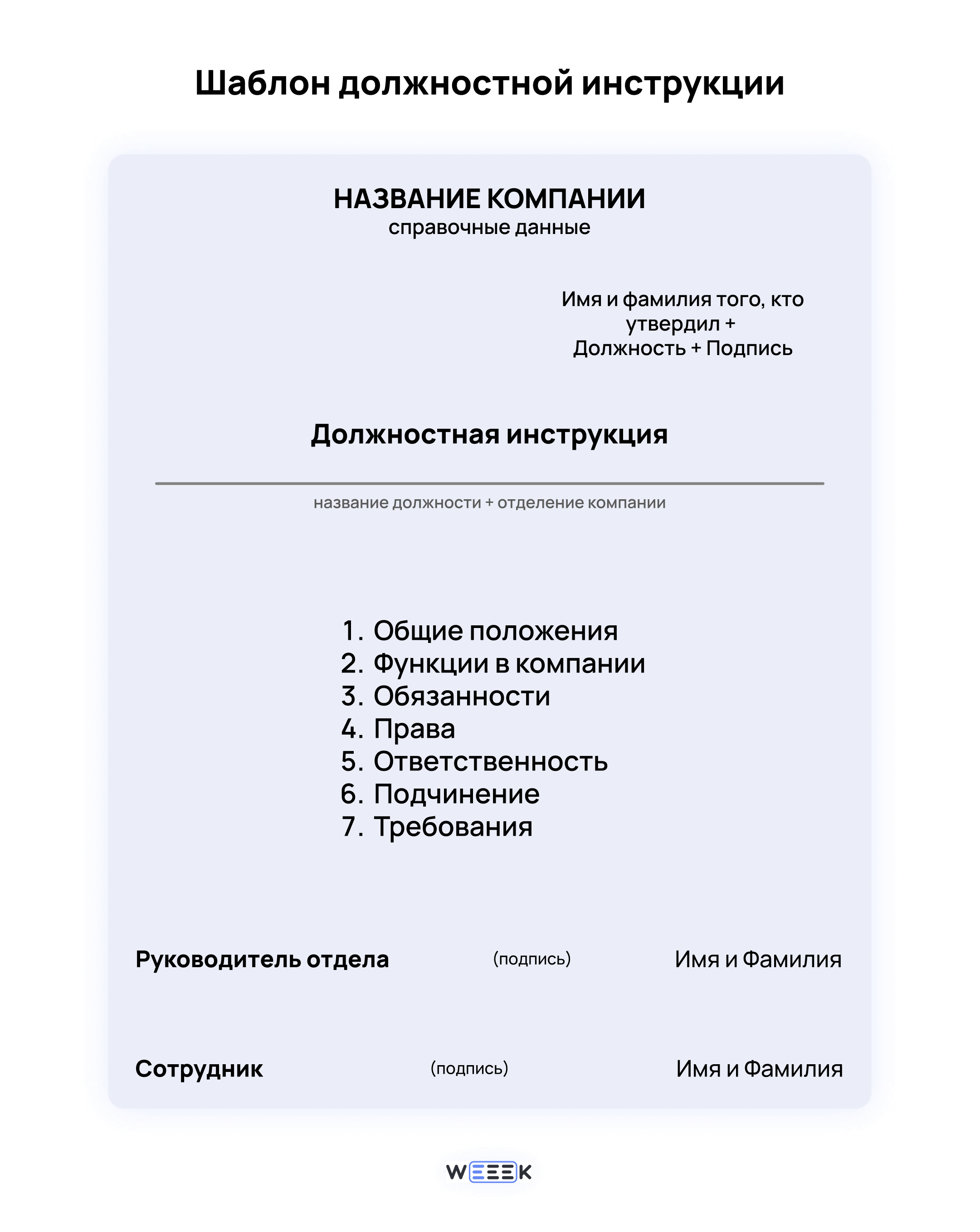 Должностная инструкция — это договор между сотрудником и организацией. В инструкции прописано, какие задачи сотрудник выполняет на работе.