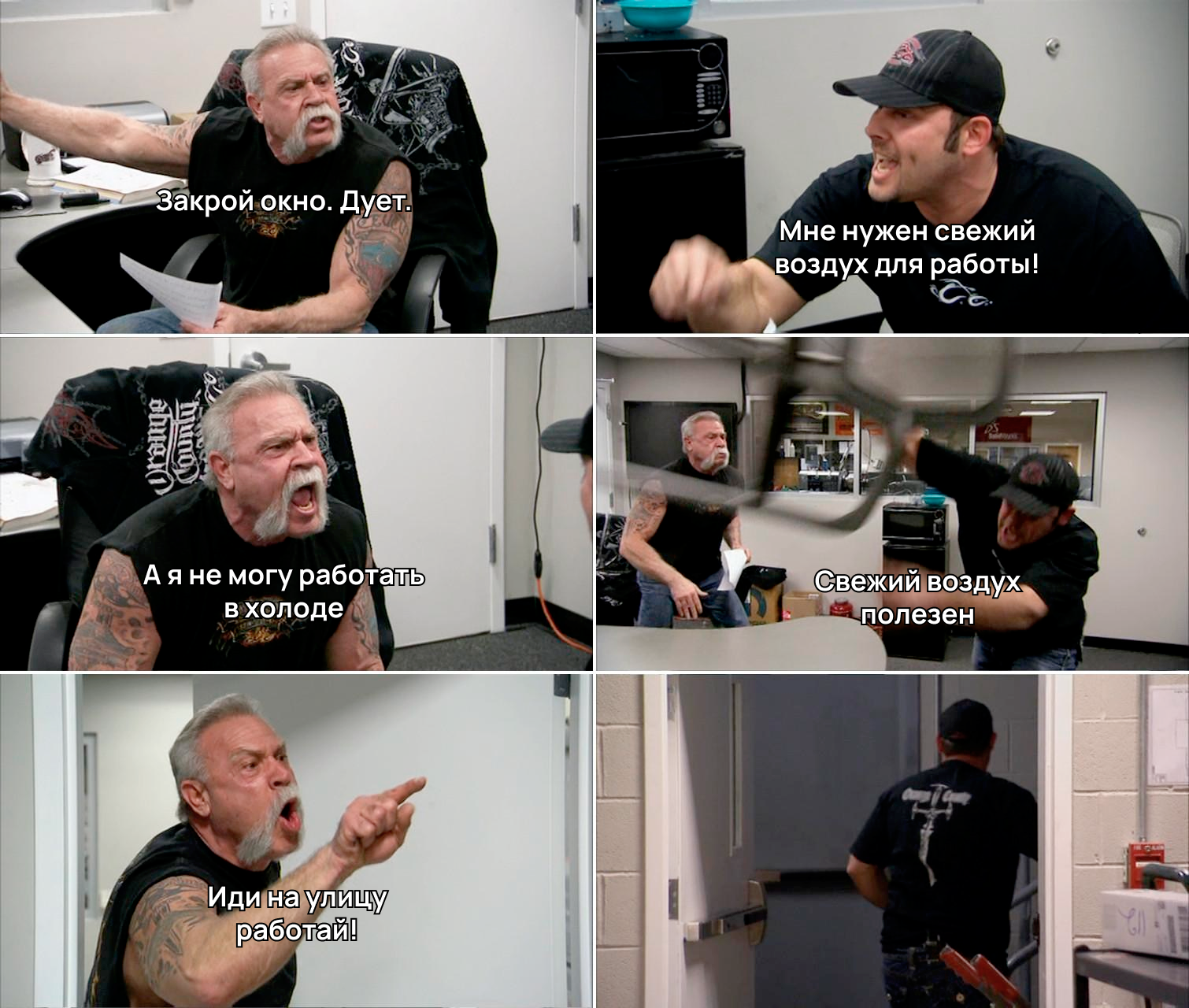 - У сотрудников разные привычки. Одни любят работать с открытым окном, другим постоянно дует. Одни любят работать под музыку, другие негодуют — неужели нельзя делать это в наушниках? Эта причина тесно связана с предыдущей, но, в то же время, стоит особняком.