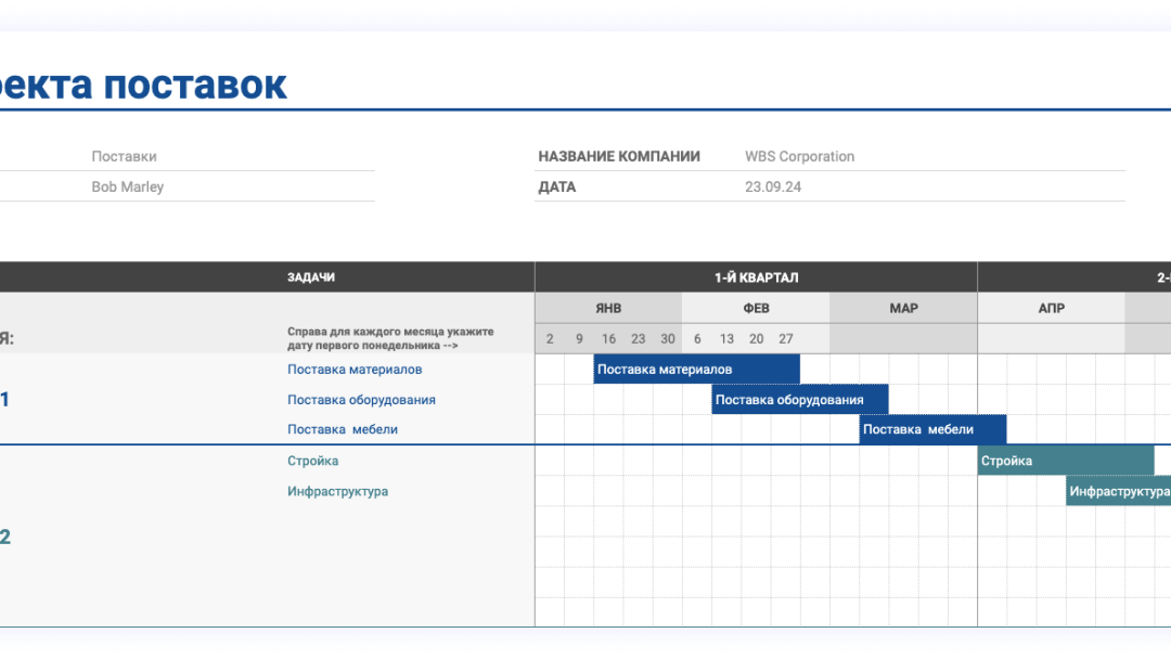 ✅ Идеально для процессов, где этапы идут последовательно. Например, для календарного отслеживания поставок или строительства