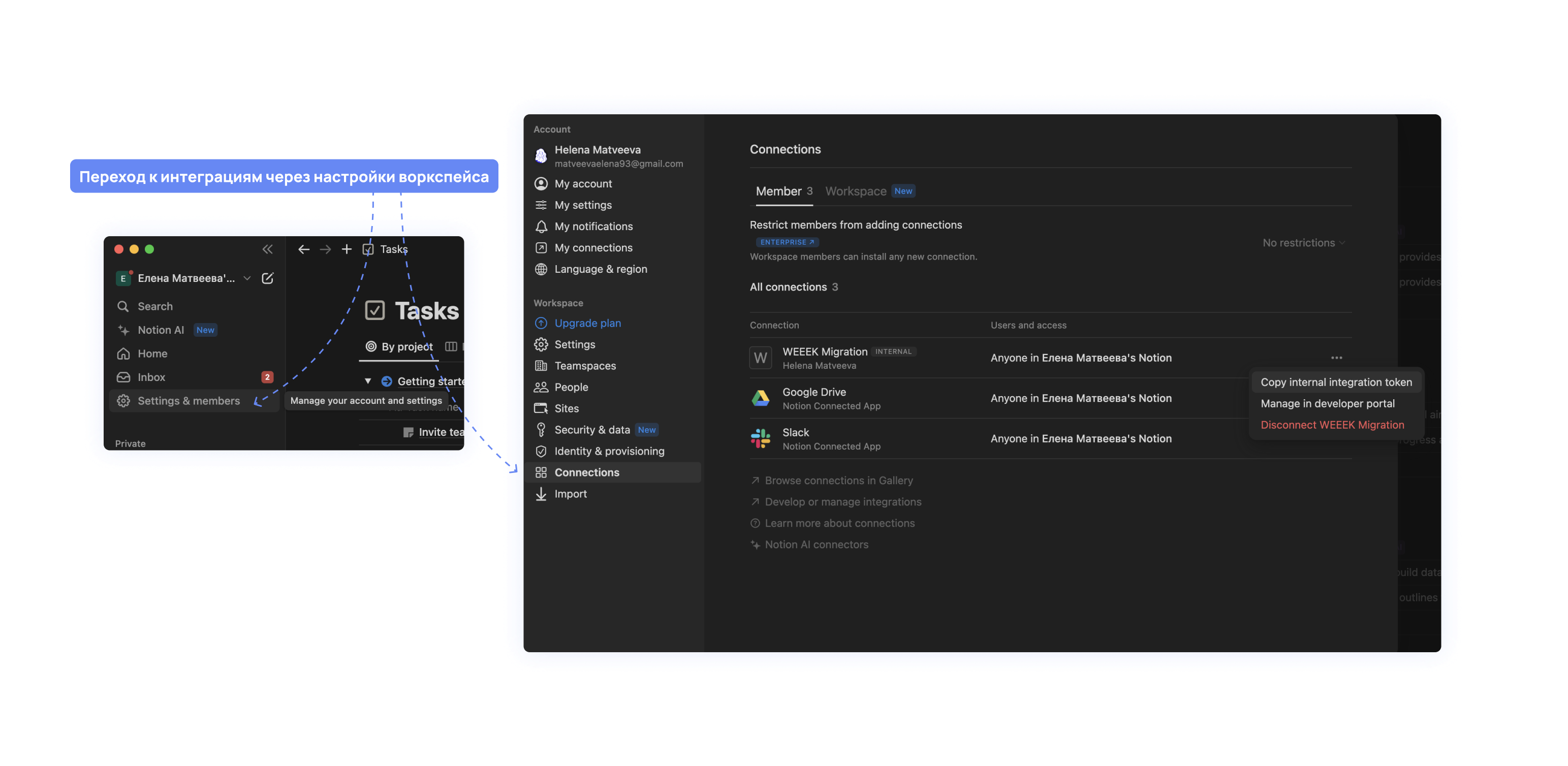 Как настроить интеграции в Notion