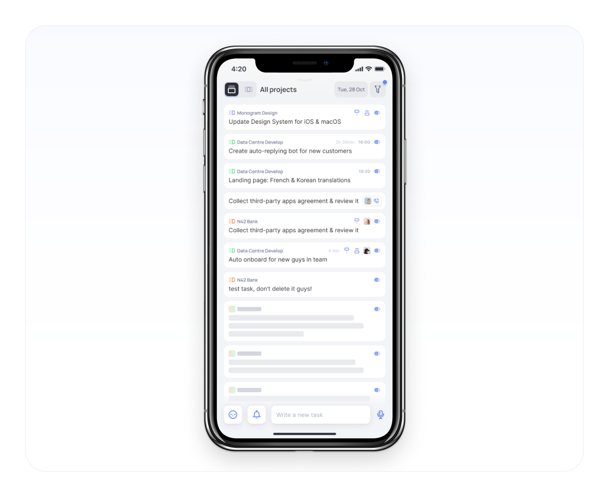 - изменили панель внизу экрана — теперь там можно сразу создавать задачи, выбрав исполнителя и проект;