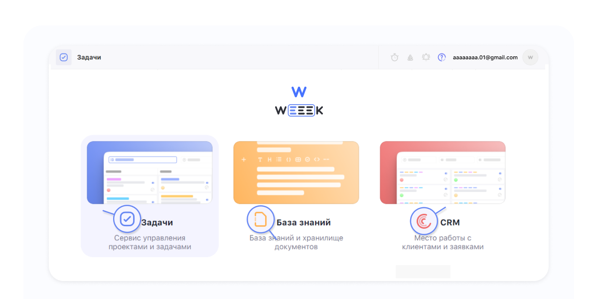 Weeek уже давно стал мультисервисной платформой. Сюда уже входит Таск-менеджер, База знаний и CRM-система, и скоро — больше. Поэтому мы сделали иконки для каждого сервиса и фавиконки — высвечиваются слева на вкладке браузера. Теперь в сервисах не запутаешься.