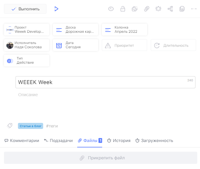 Кстати, файлы теперь не только в таск-менеджере, но и в CRM — в карточке сделок — удобнее подкреплять реквизиты клиента, счета и прочее.
