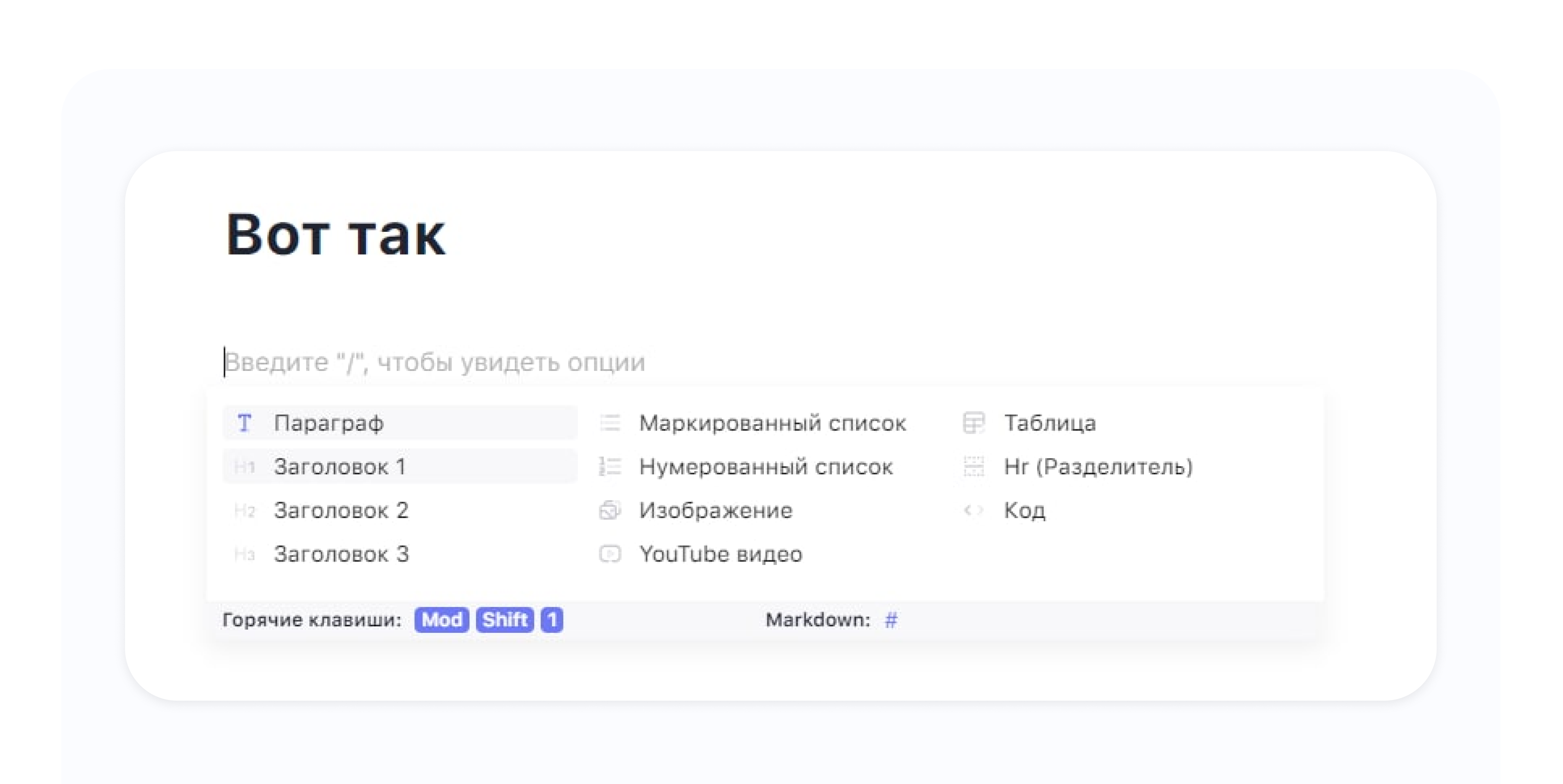 - В Базе Знаний появились горячие клавиши. Нажми «/» и наведи курсор на любой элемент — увидишь, какие клавиши есть.