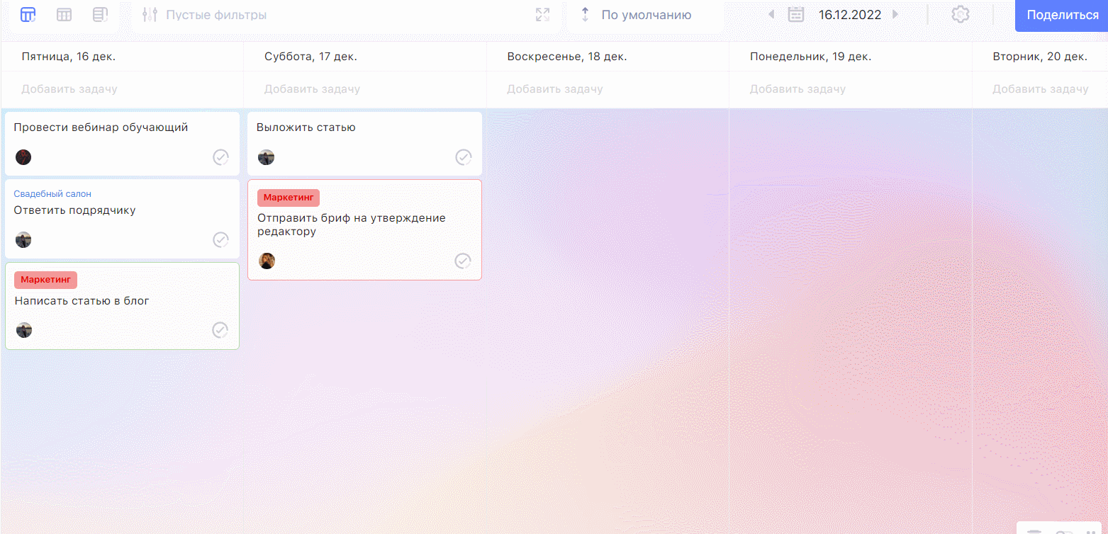 Календарь на месяц. Помимо недельного календаря, канбан-досок и списков мы добавили долгожданный месячный. Теперь планировать работу над проектами ещё удобнее.
