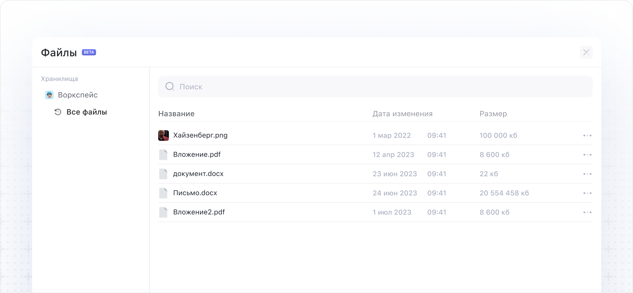 🔥Теперь в Weeek можно вызвать модальное окно, где ты получишь доступ ко всем файлам, которые были когда-либо загружены в рабочем пространстве. Это картинки и документы, которые прикреплялись файлом к задаче, сделкам и к документам в Базе знаний. Он доступен по иконке папки в верхнем правом углу. Кликай на него — откроется модальное окно.