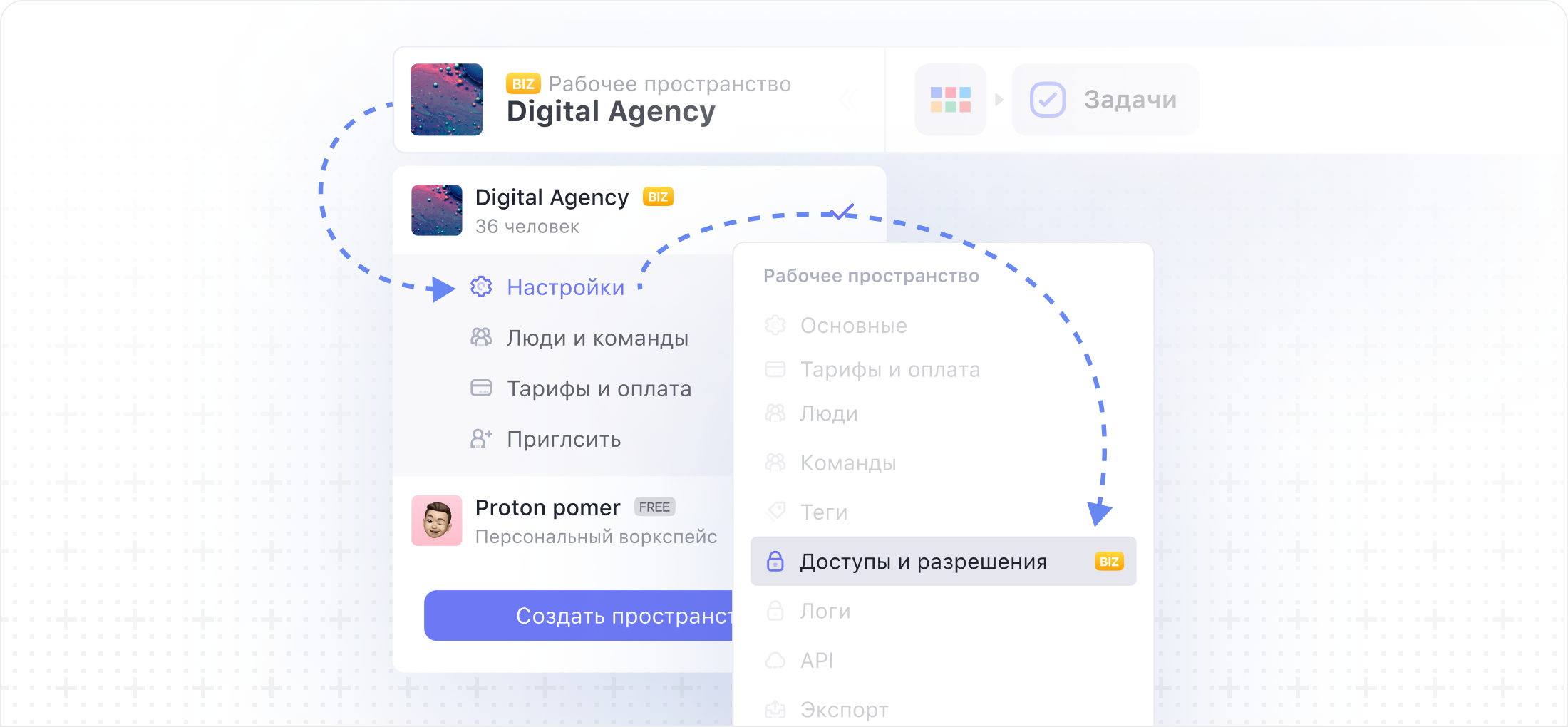 Внутри настроек в разделе «Доступы и разрешения» мы добавили возможность выбрать, какие роли пользователей могут редактировать оставленный ранее комментарии к задачам и документам — и по необходимости выдать запрет на редактирование комментария (Кстати, в прошлую серию обновлений мы добавили возможность Гостям оставлять комментарии).