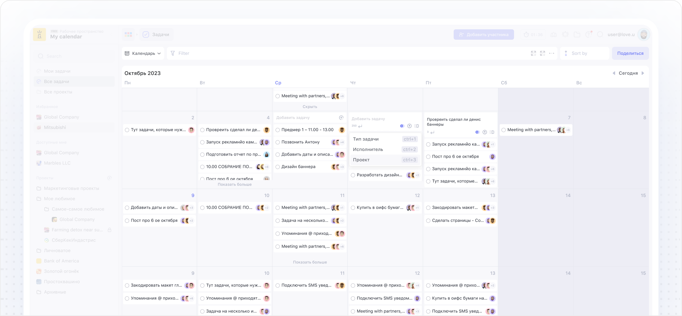 Функция пригодится, если ты работаешь с разными заказчиками или подрядчиками, и важно сохранить приватность остальных проектов рабочего пространства.