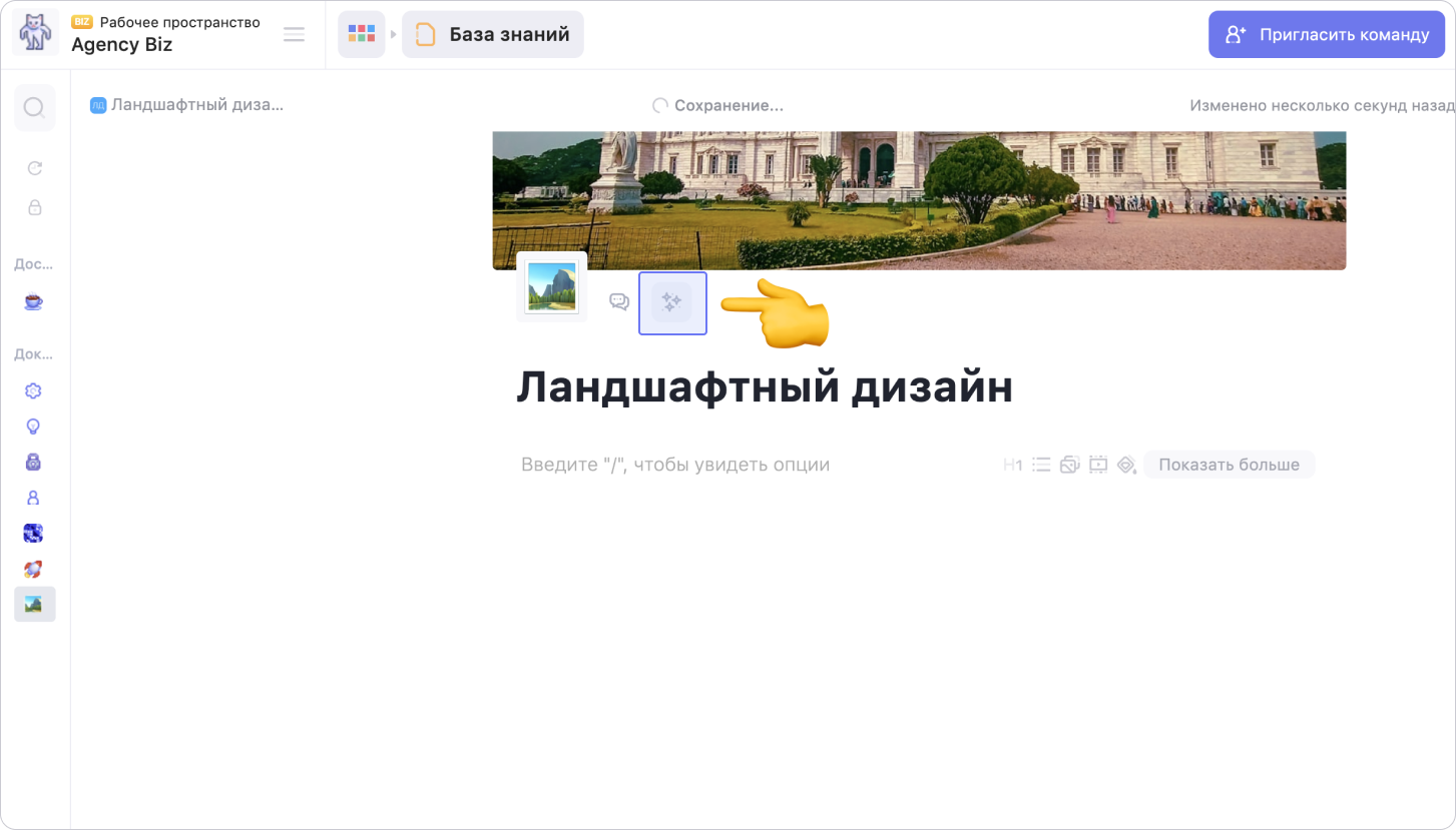 Чтобы включить AI-ассистента, нажми на иконку в верхней части документа