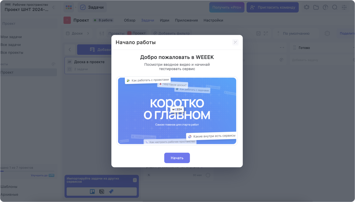 Всё! Твой аккаунт и первое рабочее пространство готовы к работе