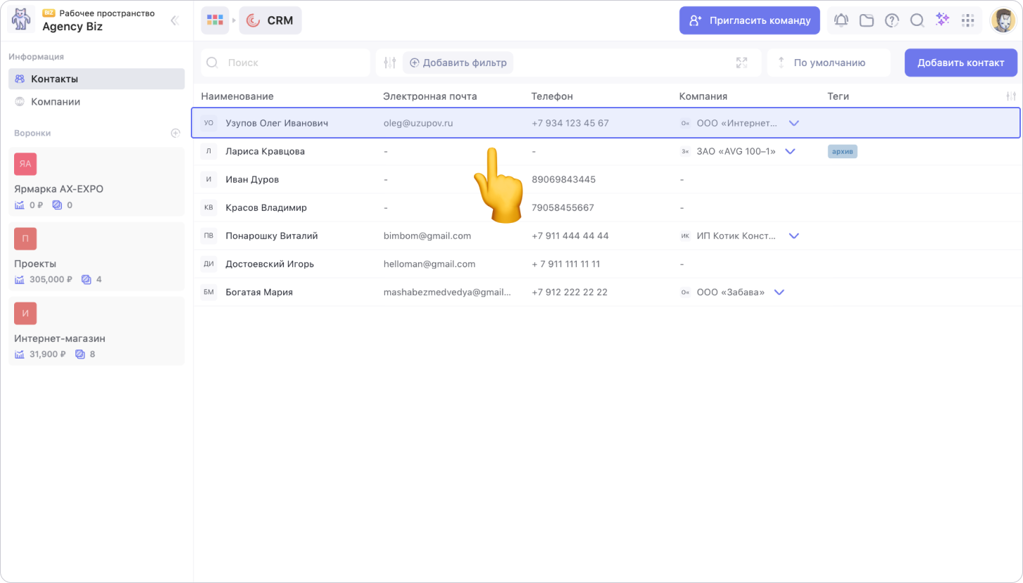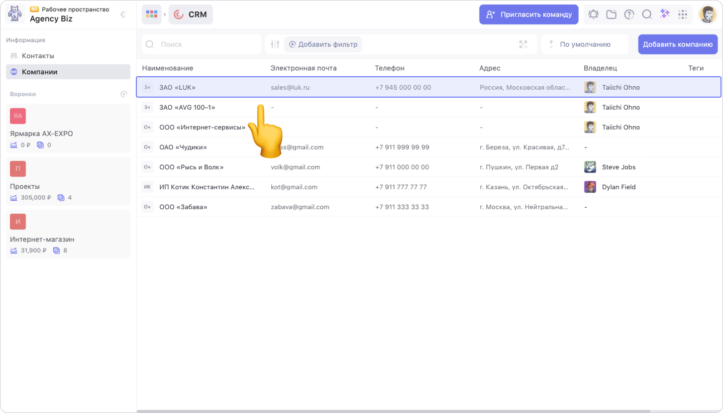 Подробнее о добавлении и редактировании контактов компаний читай здесь