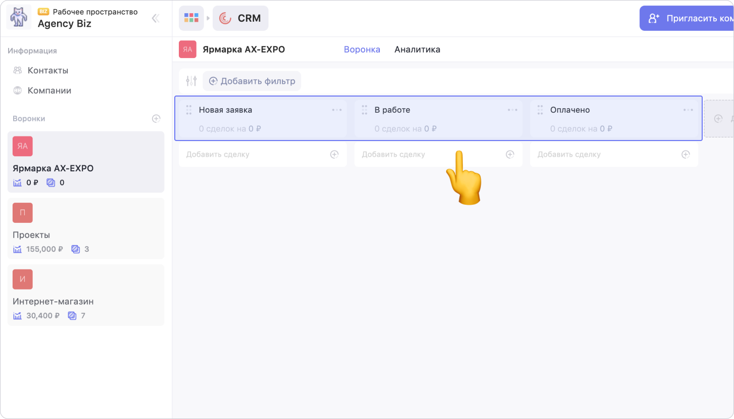 О том, как настроить этапы воронки, читай в следующей статье