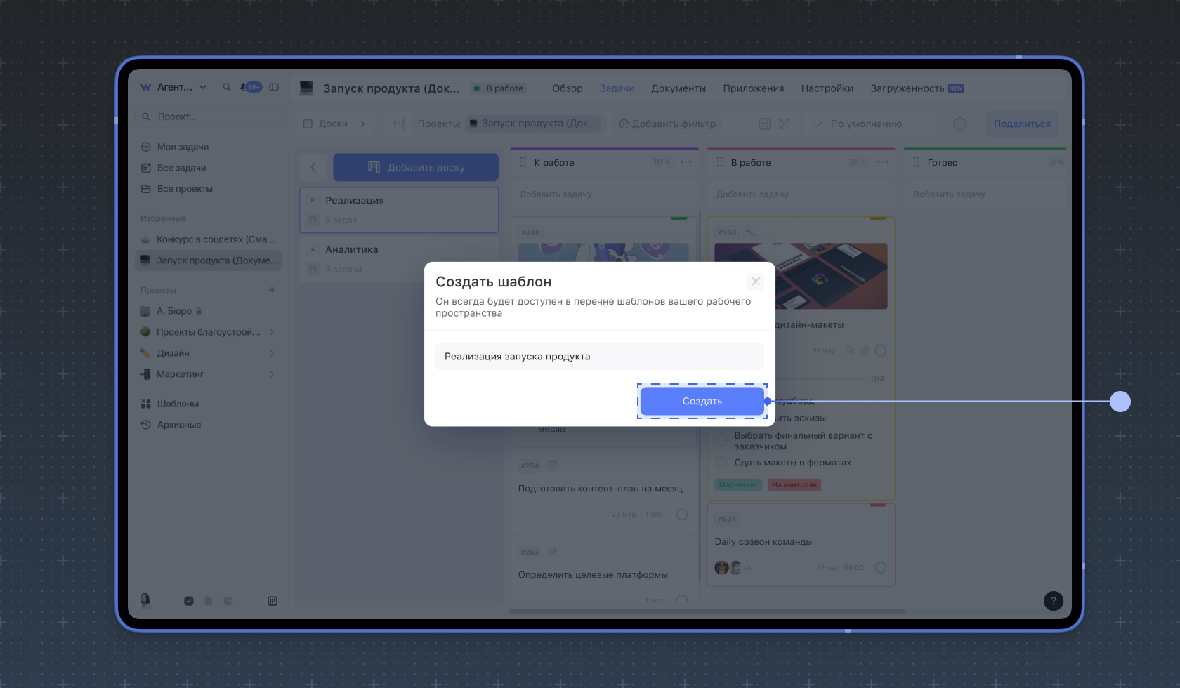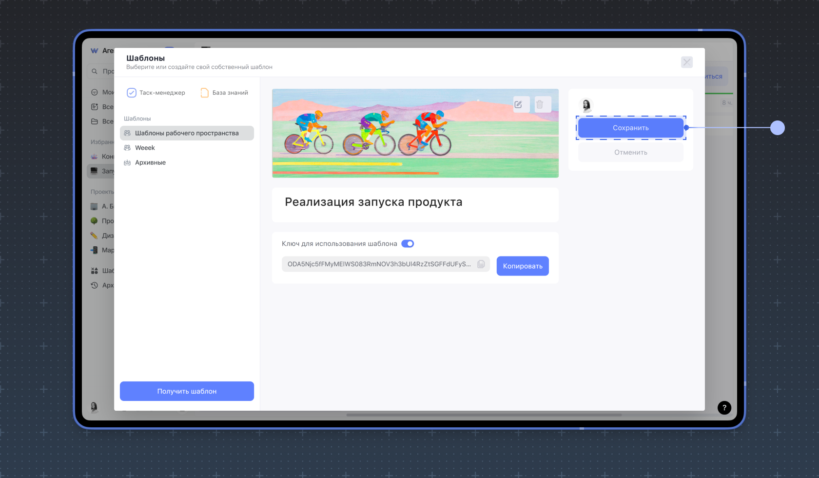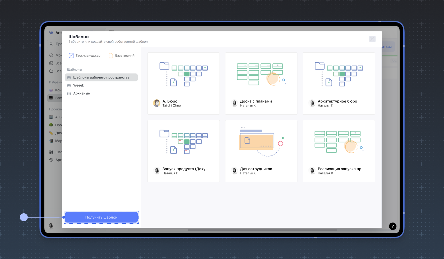 В Weeek можно создавать не только шаблоны досок, но и целых проектов. Подробнее об этом читайте в инструкции