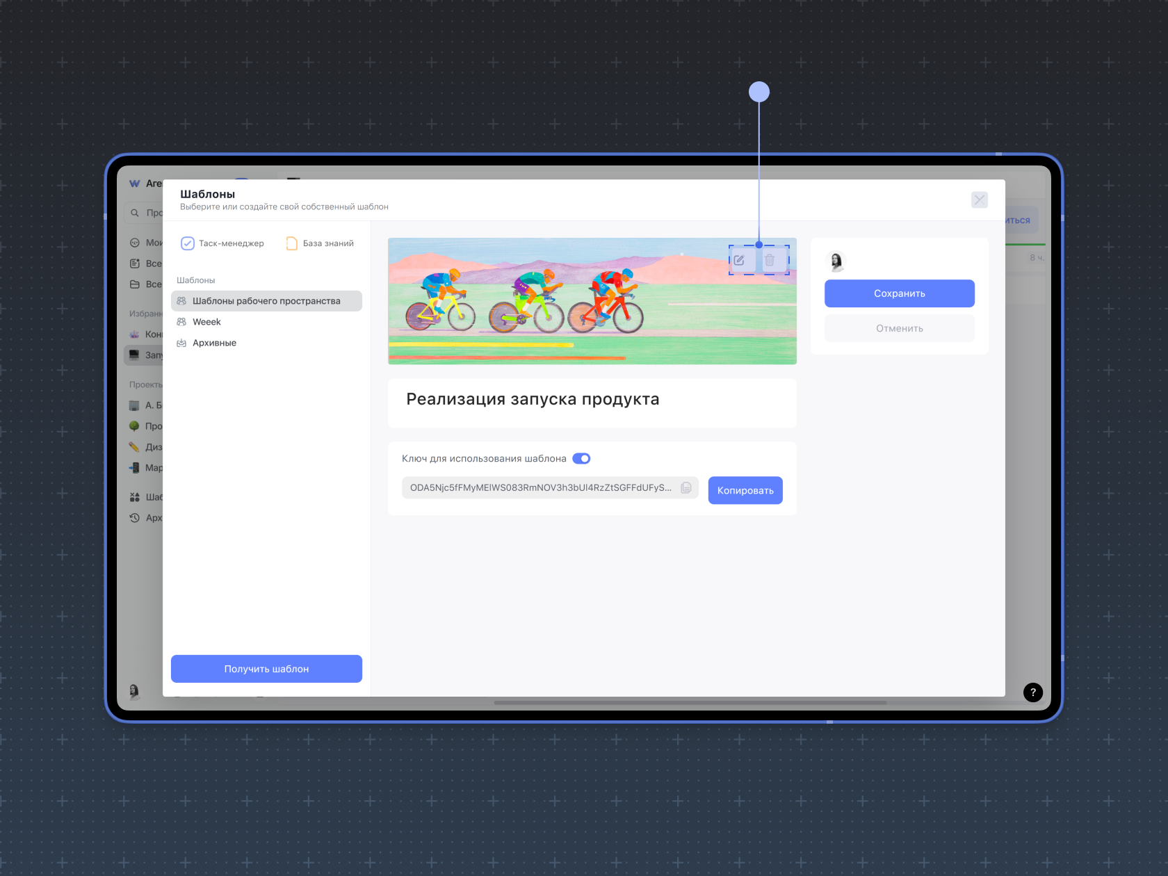 Чтобы изменить название или обложку шаблона, нажмите Редактировать.
