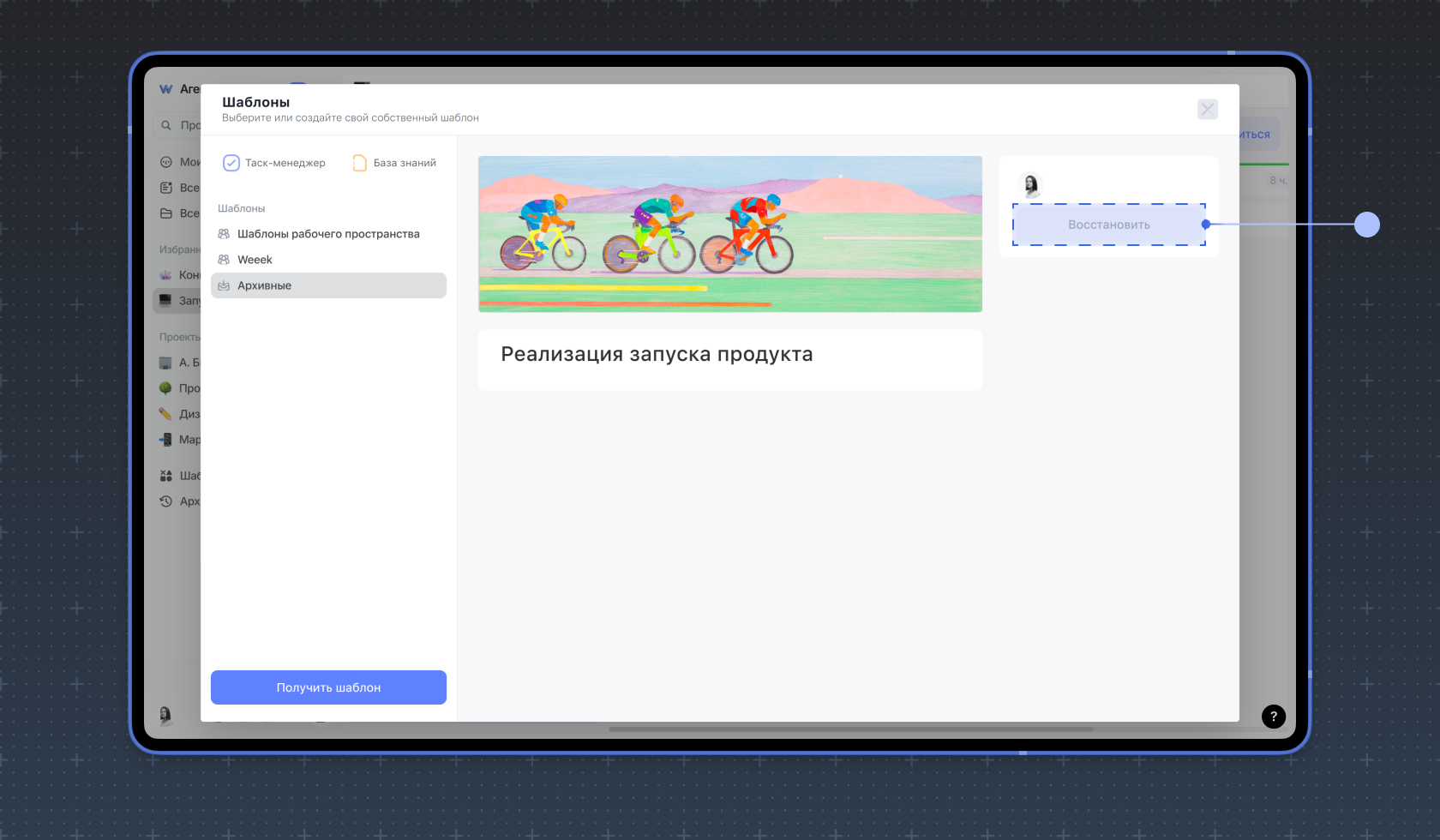 Чтобы найти и восстановить ранее архивированный шаблон, в разделе Шаблоны перейдите в Архивные. Здесь находятся все шаблоны, которые когда-либо были архивированы.