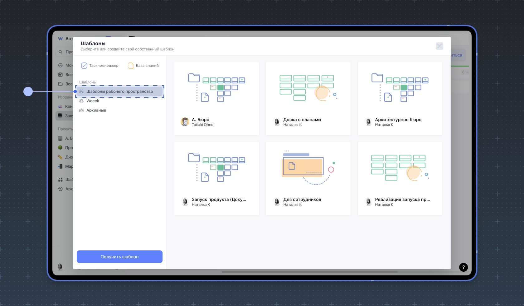 Перейдите в раздел Шаблоны рабочего пространства.