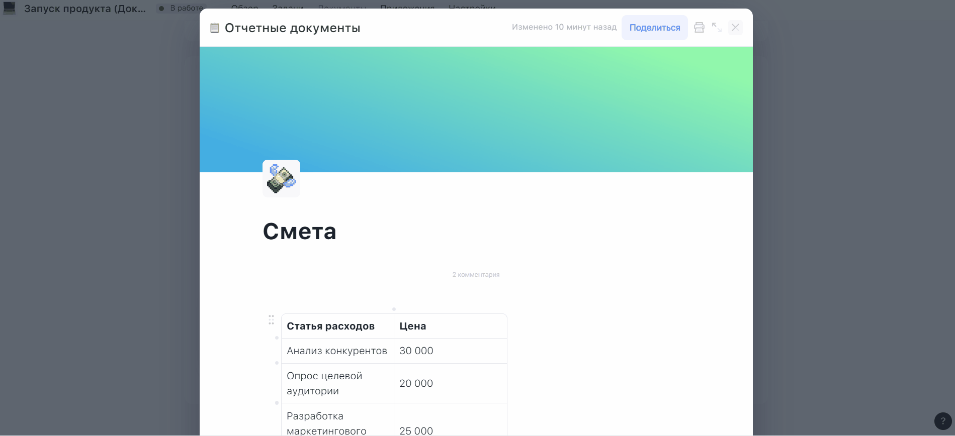 Количество комментариев документа отображается под его названием. Нажмите на это поле, чтобы раскрыть все комментарии документа.