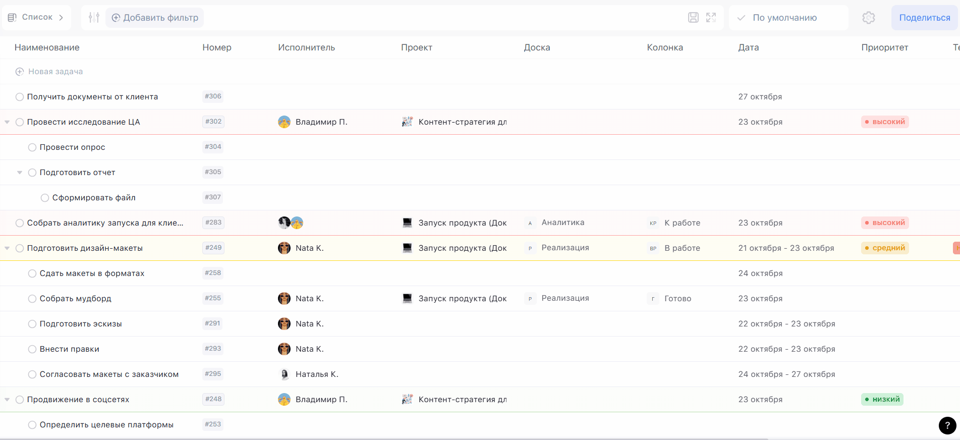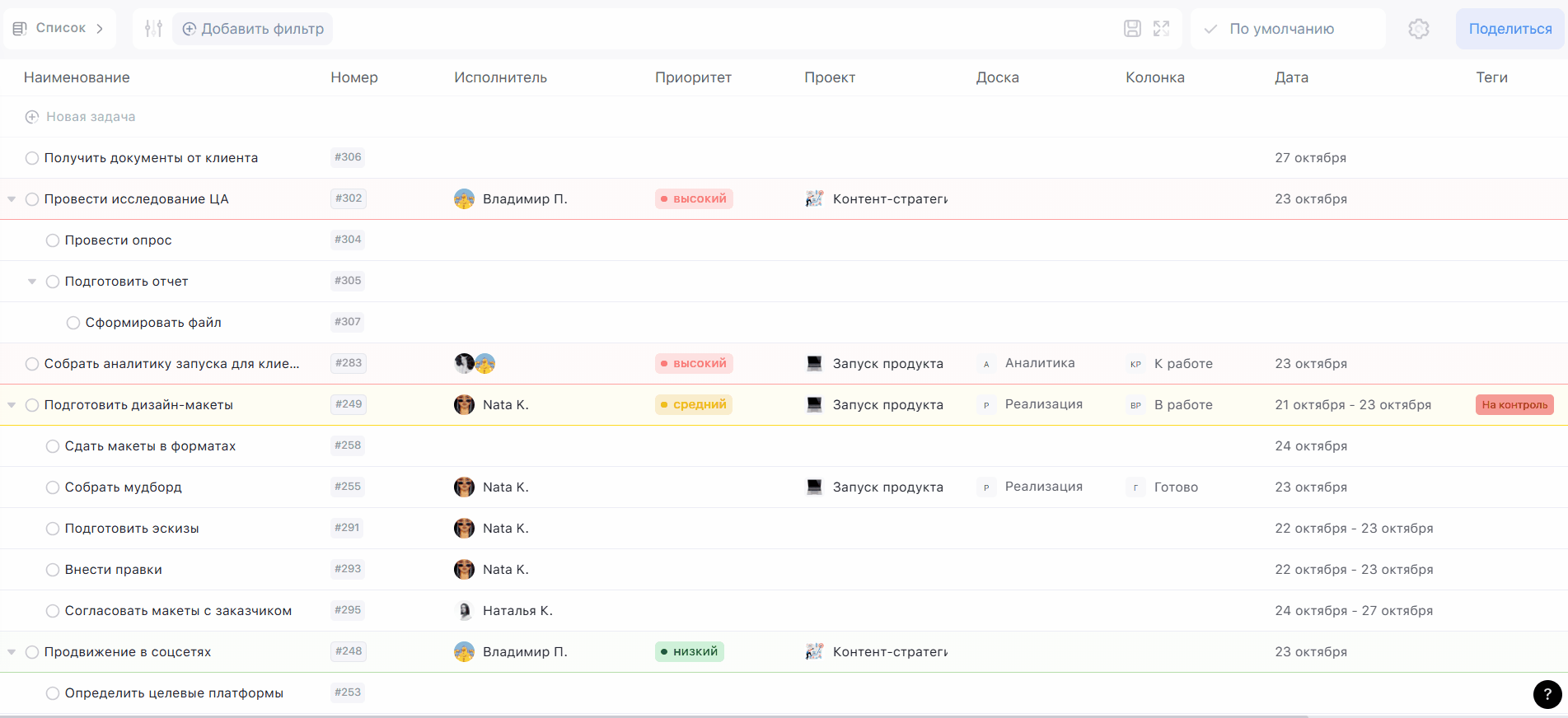 Подробнее о фильтрации задач читайте в инструкции