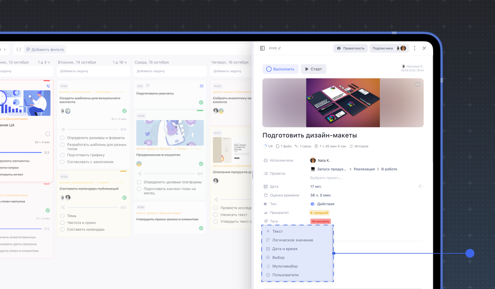 Как создавать и использовать кастомные поля в задаче