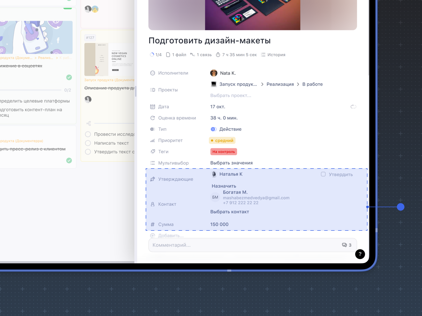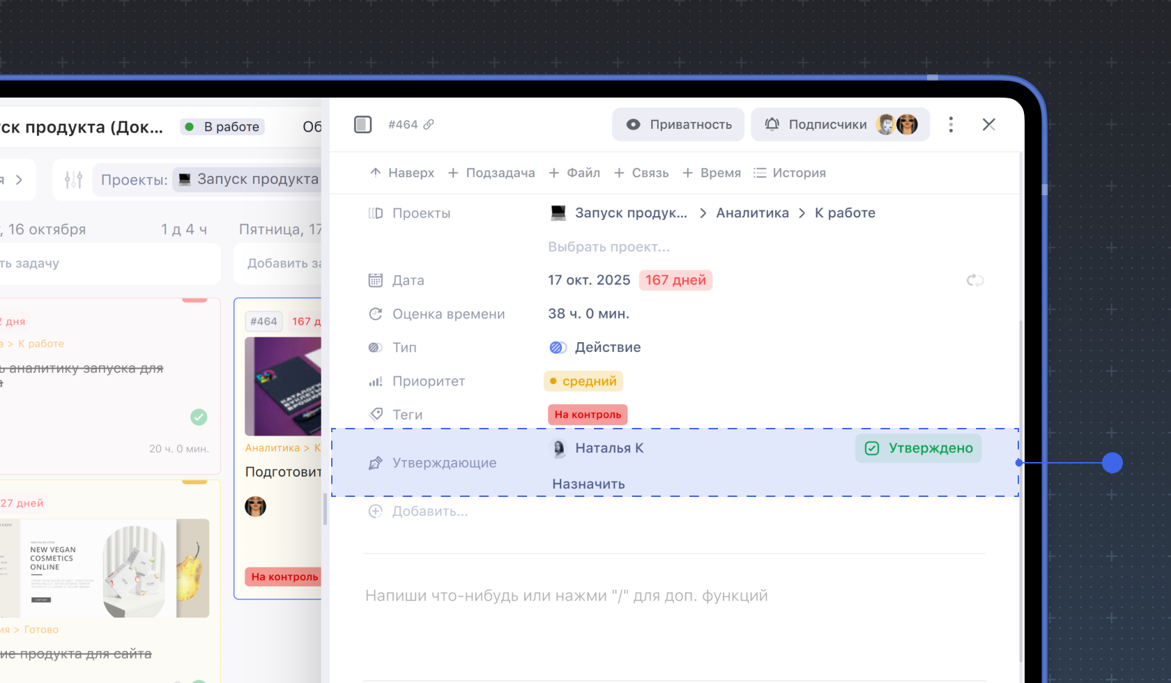 9. Утверждающие. Добавьте пользователей для утверждения деталей задачи, аналог подписи при согласовании