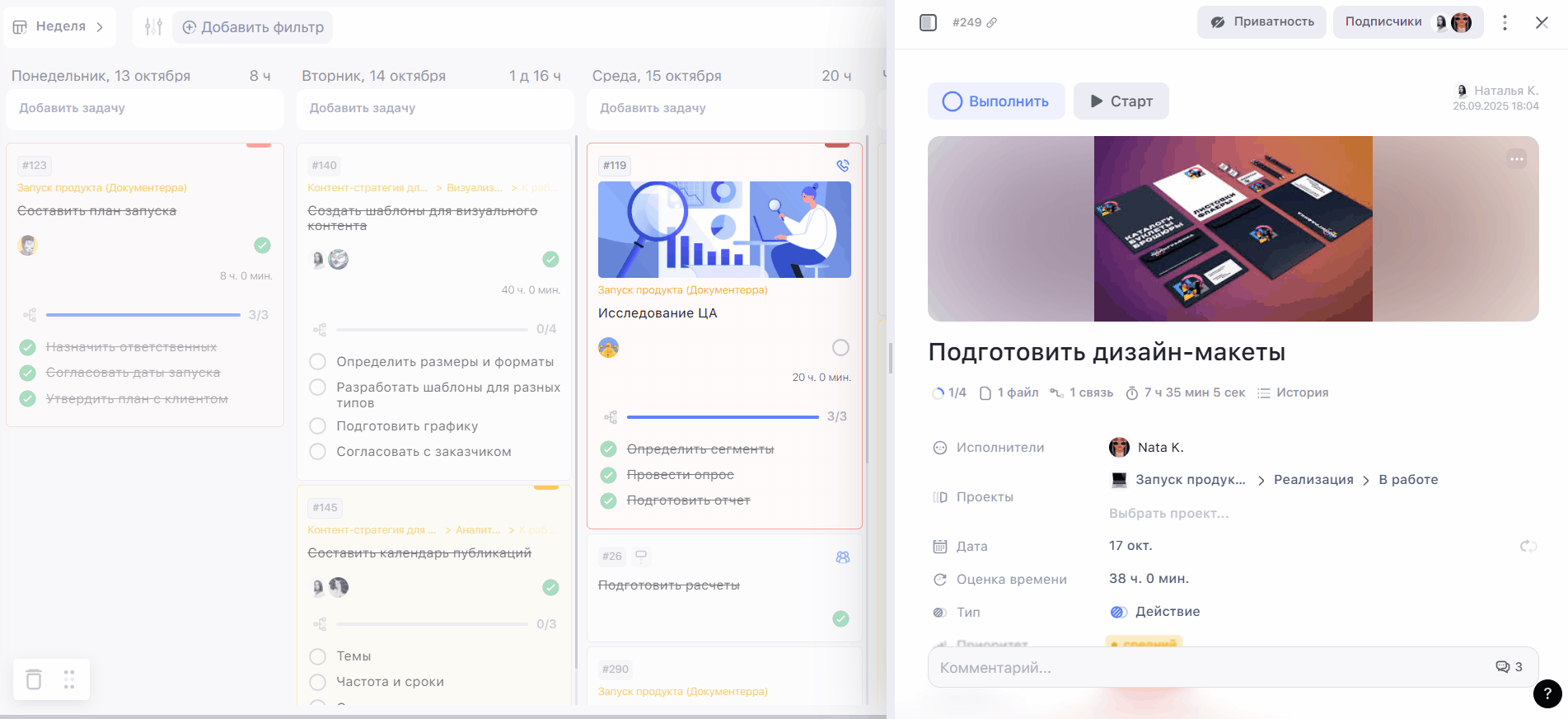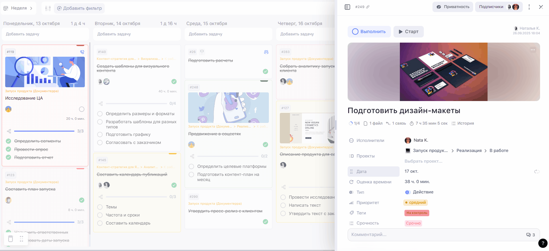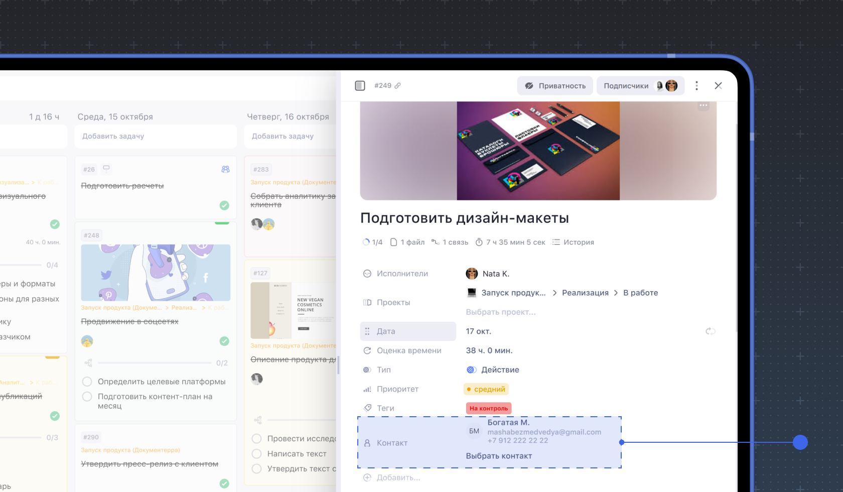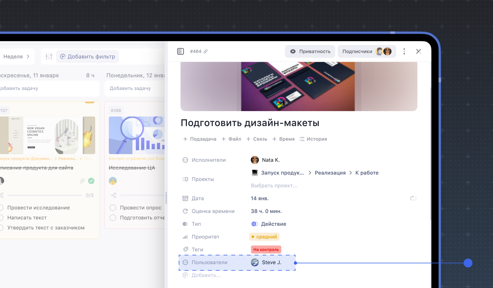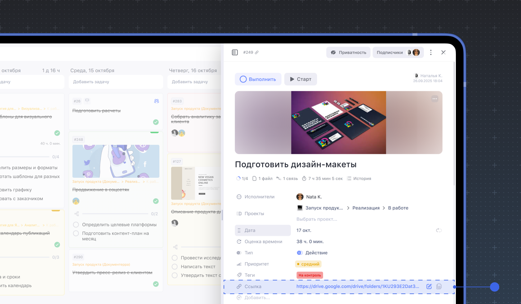 3. Дата и время. Вы можете указать сроки внутри задачи, которые не будут влиять на её дедлайн и отображение внутри календаря