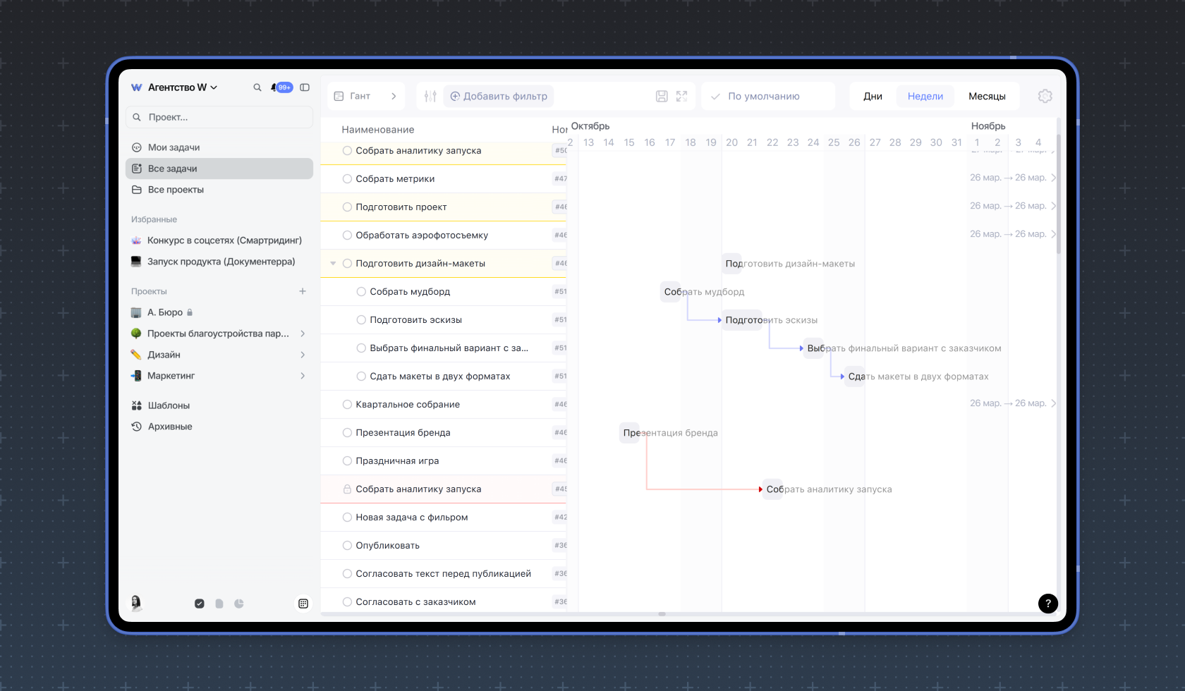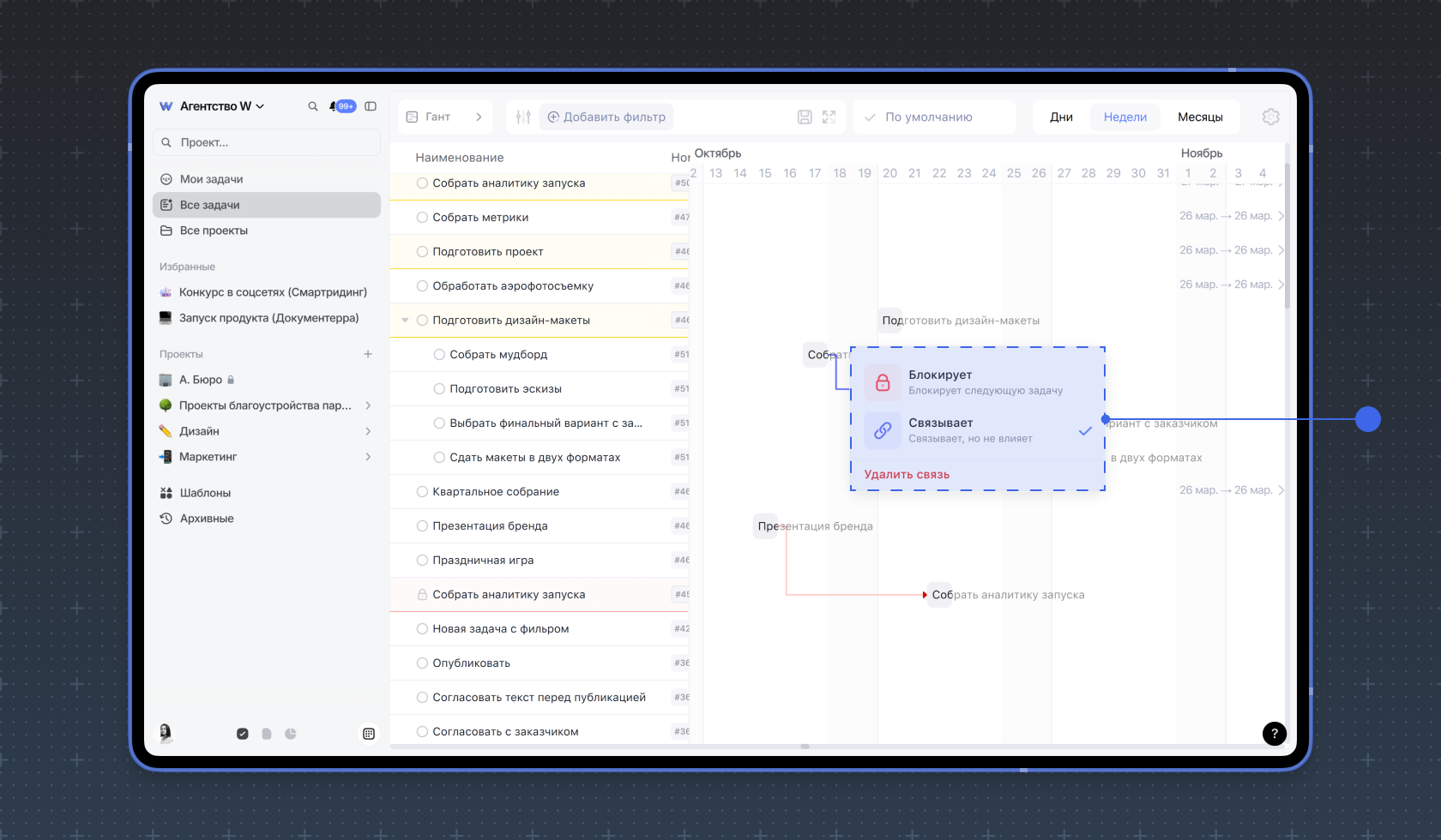Связи и зависимости между задачами — это мощный инструмент для планирования работы. Они помогают организовать последовательность выполнения задач и настроить связи между ними.