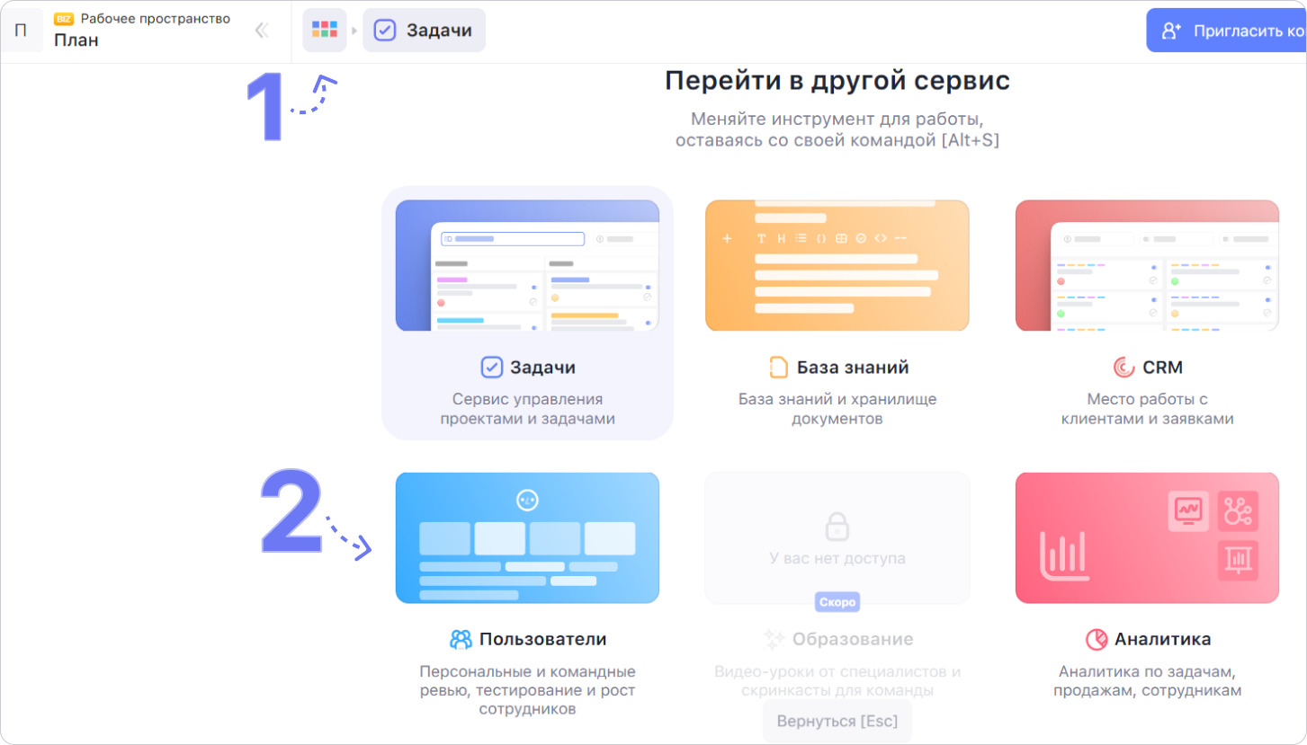 Зайдите в сервис Пользователи. Для этого нажмите на иконку с цветными квадратиками в левой верхней части экрана, затем выберите Пользователи.