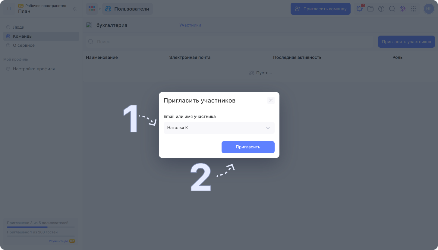 - 1. Выберите одного или нескольких участников рабочего пространства