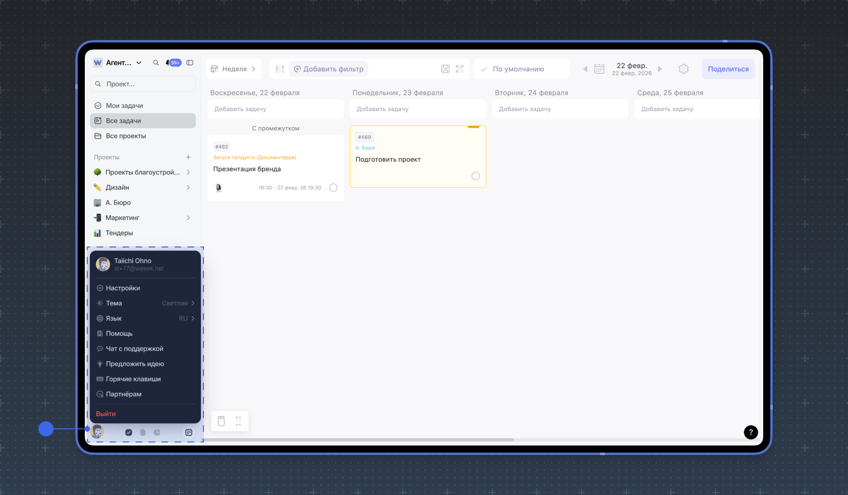 Каждое рабочее пространство — это отдельная сущность со своими проектами, задачами и рабочей командой