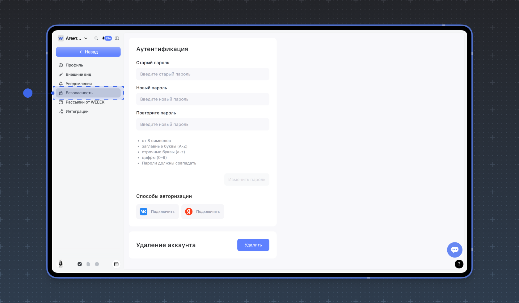 — как сменить пароль от аккаунта WEEEK