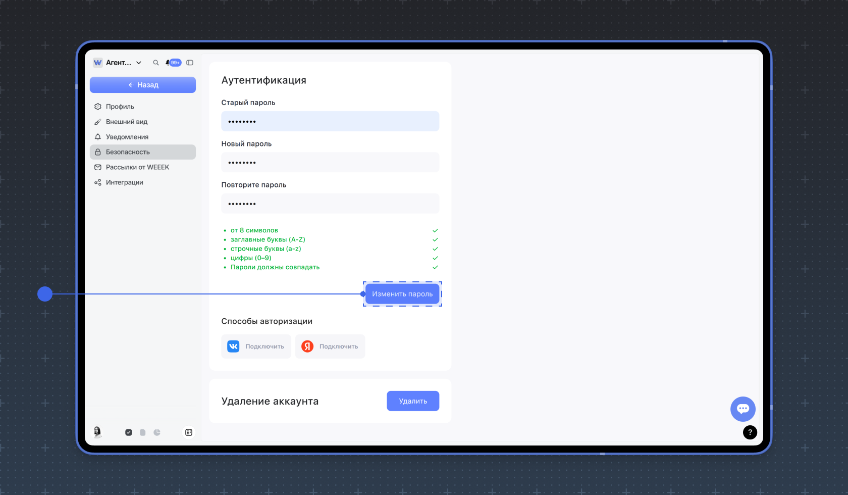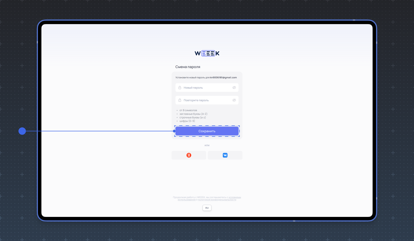 Как изменить или сбросить пароль в WEEEK