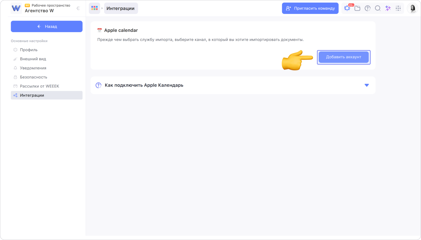 Как синхронизировать задачи в Weeek с Календарём Apple